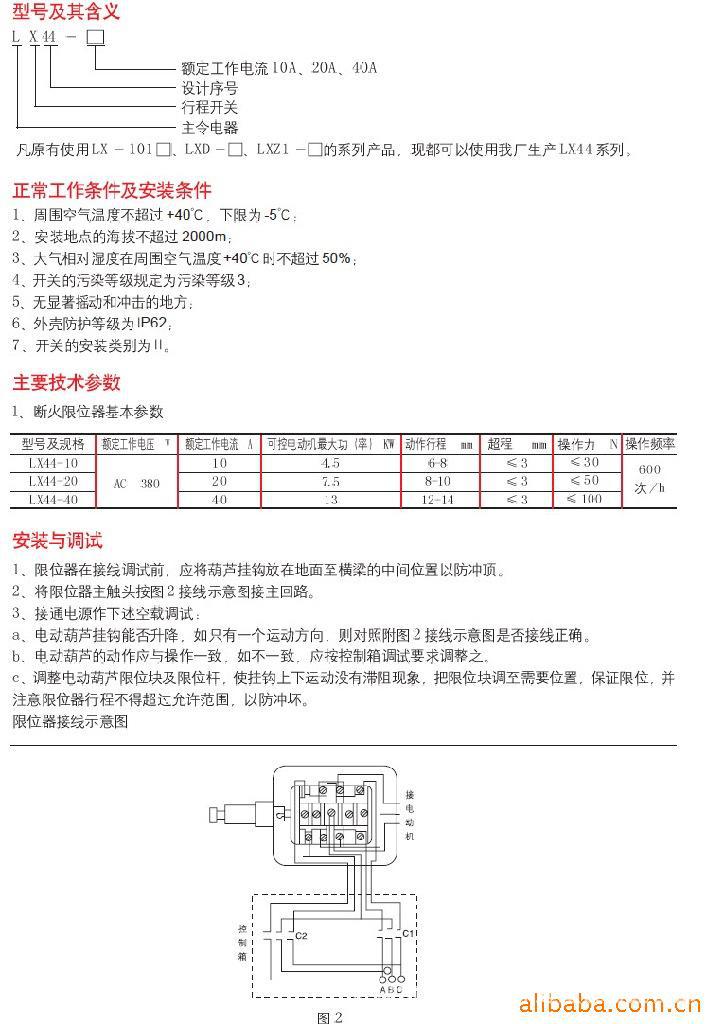 LX44系列断火限位器主要用于交流50Hz电压至380V,直流电压220V的控制线路中,供5吨~10吨CD1型MD1型一般钢线绳式电动葫芦作升、降运动的限位保护之用,可直接分断提升电动机的主回路