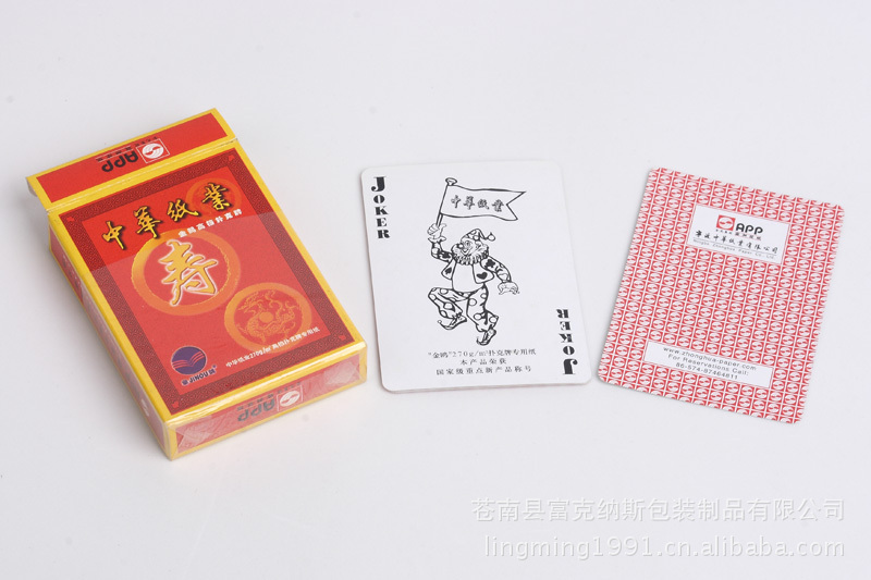 苍南富克纳斯包装制品有限公司专业为各事企单位、银行、房地产、证券公司、广告公司生产个性、时尚、优惠的广告宣传扑克,我厂以时尚的设计风格、先进的机器设备、精细的制作工艺、快速的生产能力为企业导向,并引进现代化电脑管理,物流配套措施为各地区的客户服务。