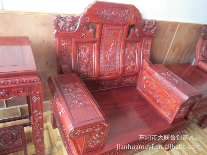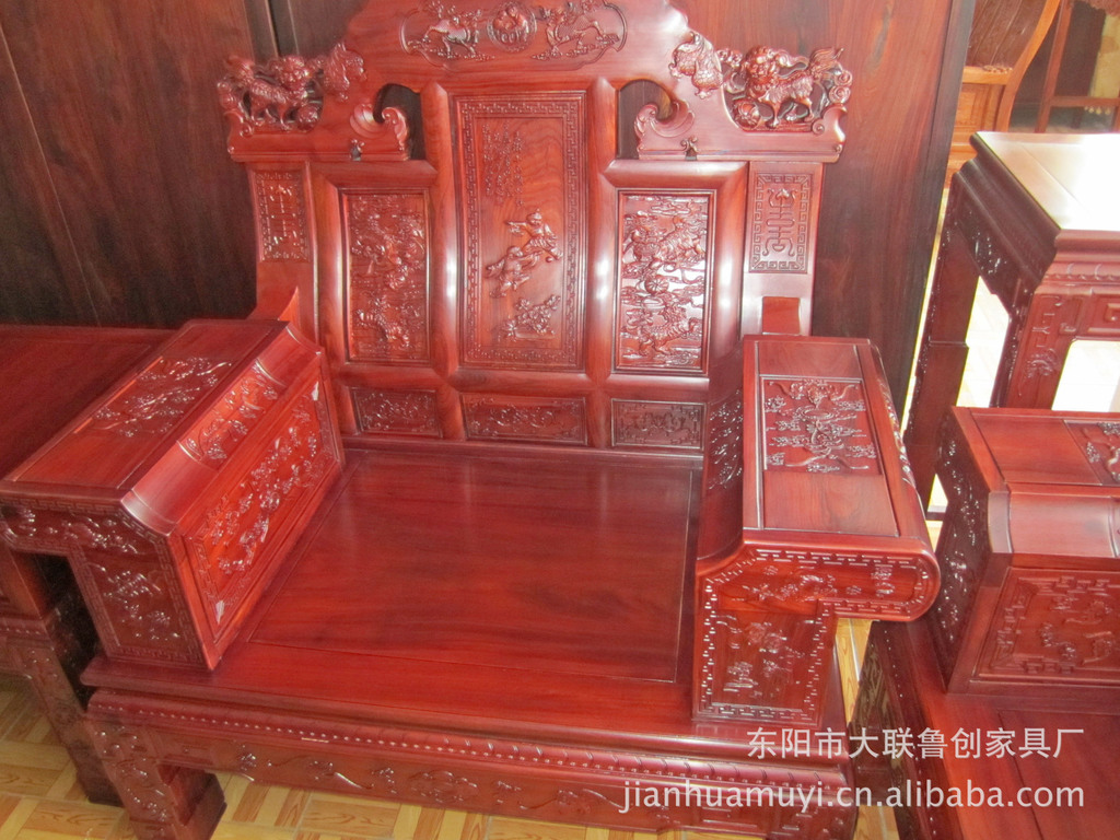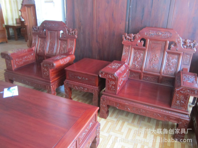 【简要描述】1:此款大奔沙发产品雕刻精细,纹理清晰,仿古而不古,精致而气派,设计独特,不仅实用,而且非常美观。2:木材重,强度高,甚耐用,极少有白蚁和其他虫虫的危害!摆在家中时尚而又典雅,不但不会贬值还能升值和收藏。是送人及居家摆设的上好精品。