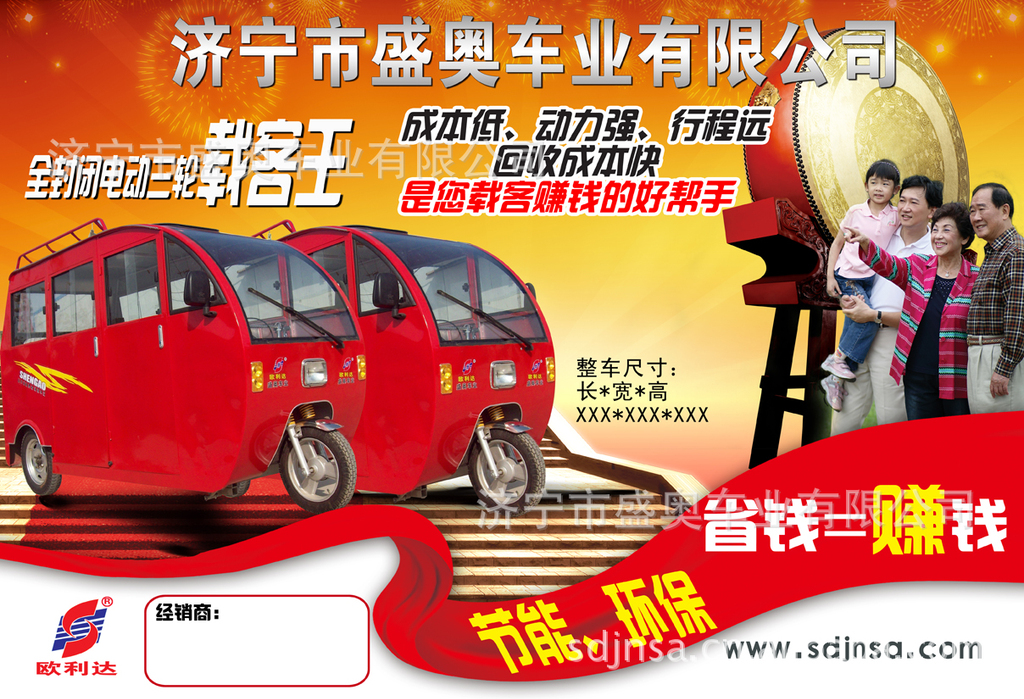 山东济宁盛奥电动车有限公司位于孔孟之乡,礼仪之邦,地理环境优越,交通设施完善。是研发、生产、销售各种三轮车系列的专业公司,近十年的发展,公司占地总面积已达21000余平方米,盛奥车业有限公司是我国较早开发生产电动车的企业之一,本公司专业研发、生产各种类型的电动车车架、车厢、扶手、座垫、车把等相关配套件,是全国较大的电动三轮车配件研发生产基地. 现有高素质的员工200人,其中工程师、技术人员20人。设有专业新产品研发机构。各种加工手段齐全,车、铣、刨、磨、冲、剪、折、数控弯管、各种自动焊接、磷化流水线、喷塑流水线、喷漆流水线等通用、专用机床设备80余台/套。具有日产300套配件的生产能力。