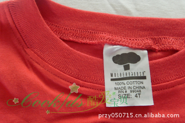 全棉汗布 180g/m2,弹力罗纹布的领口和袖口