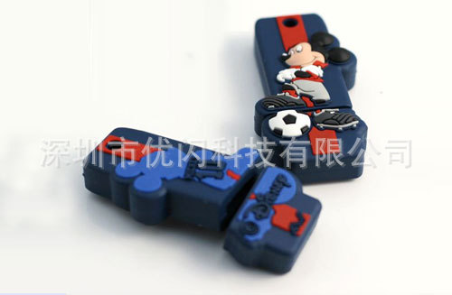 足球宝贝U盘是广大足球迷的,长方形的整体设计上采用凸起的卡通米奇踢足球的图案,非常生动活泼,这款足球宝贝U盘外壳材质为pvc软胶,非常柔软有立体感,同时还可以选择其他颜色。