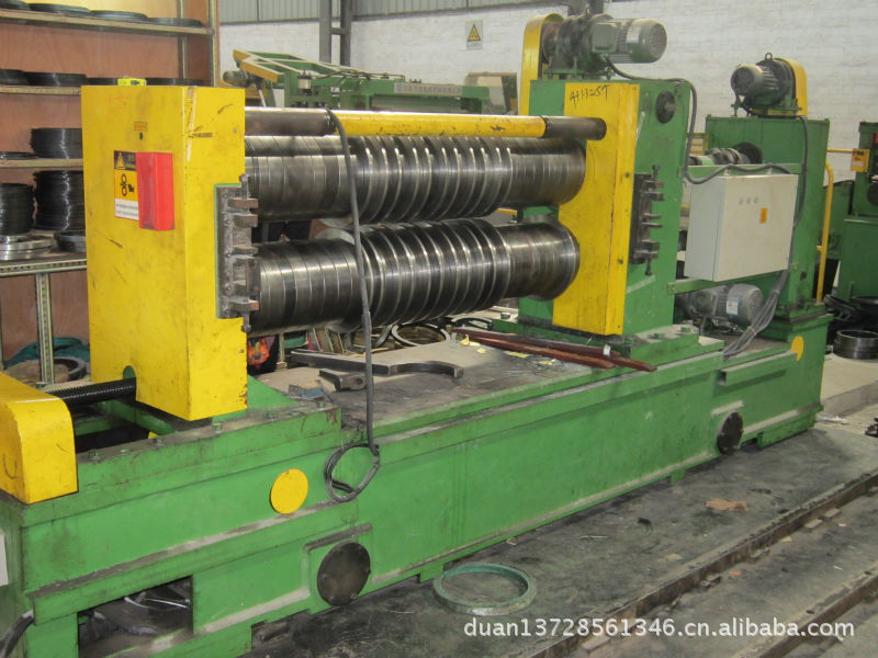 设备主要组成部分及主要参数:1、进料液压台车2、液压开卷机3、铲头、初整平压头4、夹送、5辊粗平喂料机5、液压剪头机6、侧导位,夹送辊7、纵剪分条机8、过渡架、边料机9、液压单活套渡桥(2台)10、分离架、压整辊、液压涨力站、导向辊、送料台11、液压钳口收卷机、分离架12、辅助支撑(2台)13、出料液压台车14、直流电柜、电控操作台15、液压站具体参数: 分条材料:冷轧板、不锈钢、铝板、镀锌板等 材料厚度:0.25—3.0mm。 材料宽度:1250mm 材料重量:最大15T 纵剪速度:0-120 m/min,无级调速 分条数:20条/2mm厚;10条/3mm厚 单边不直度:≤0.05mm/m 纵剪宽度误差:±0.03mm 剪切毛刺:厚度1.0mm≤0.03mm(Max)生产线占地面积:约长25m×宽4.5m×高2m产品型号:1300mm型品牌:ZJ产地:广东佛山产品报价:1000000