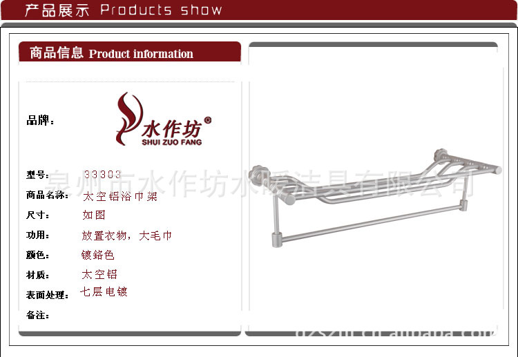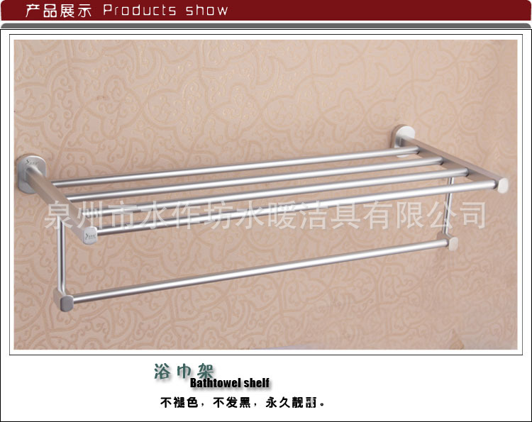 【特点】新一代太空铝系列卫浴挂件产品外观时尚、形体轻巧、经久耐用,手感好、砂面细腻、典雅时尚,外表氧化层厚实,永不退色、变色。顶级设计师设计,造型新颖别致,人性化设计,极富想像力和创造力,更具有不留水斑、不结水垢、易于打理、永不褪色的特性品质,突破了传统卫浴挂件的诸多缺陷与不足!