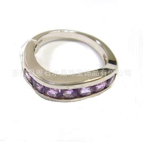 【名称】925银镀白金天然紫晶‘一字’戒指