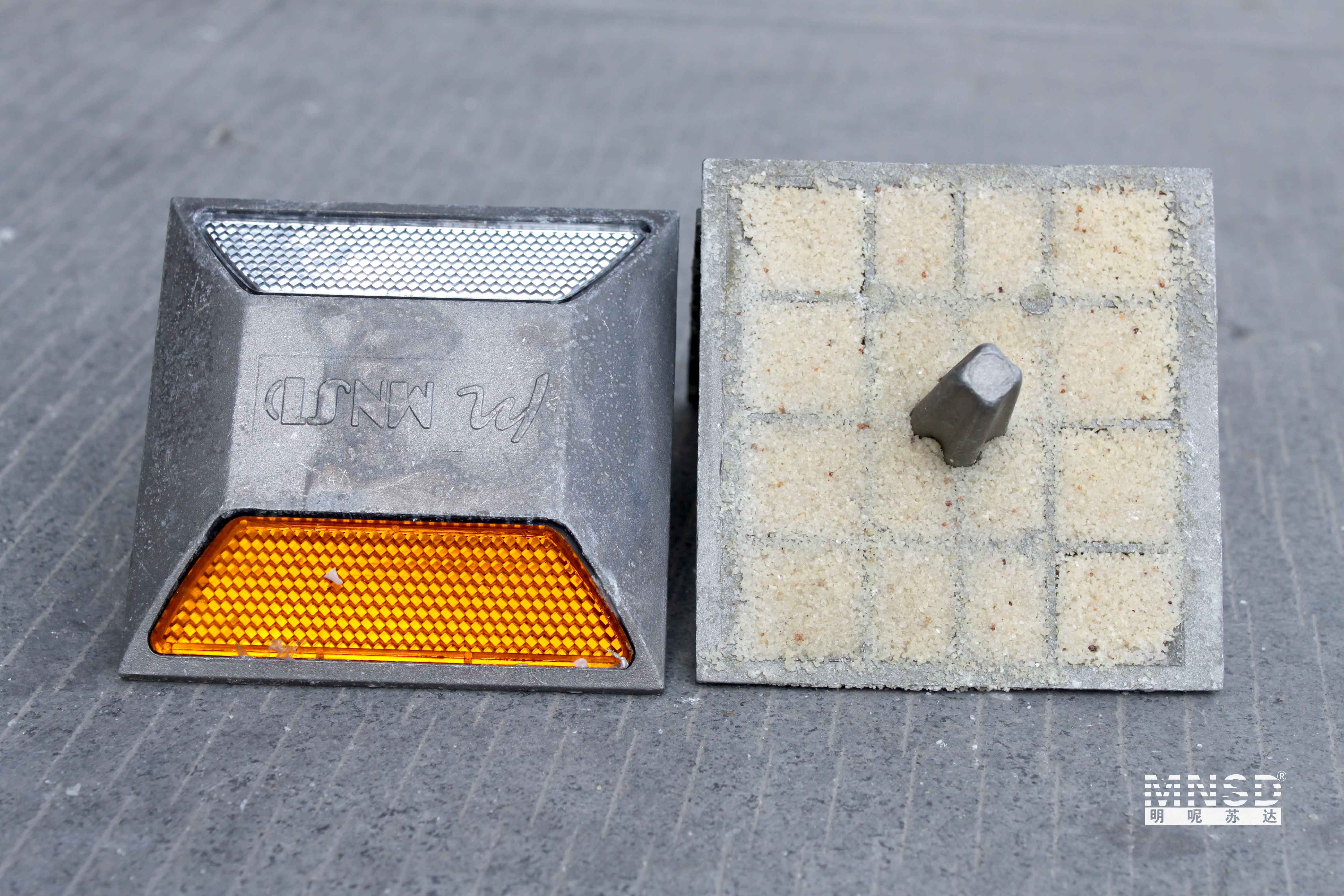 3、主要安装在道路的标线中间或双黄线中间,通过逆反射性能提醒司机按车道行驶;