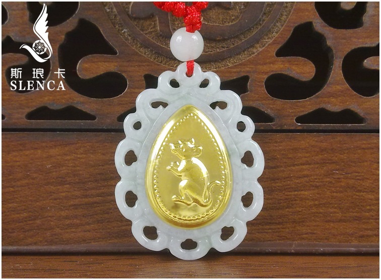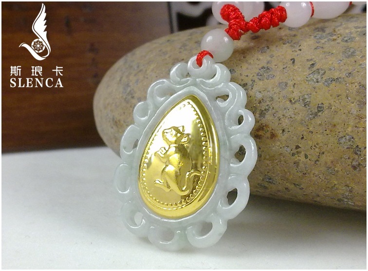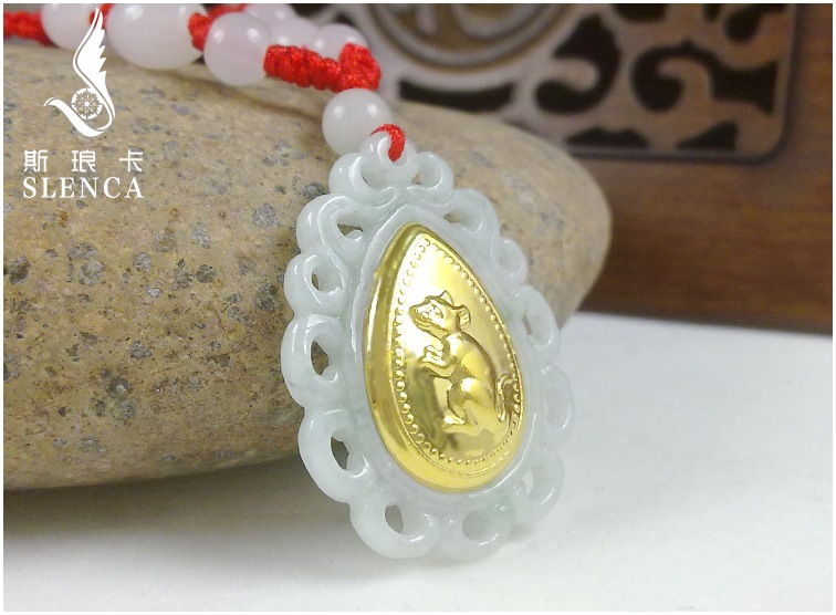 【金镶玉介绍】 自古以来,翡翠一直是最受人们喜爱的珠宝之一。翡翠的绿色与红色象征幸福与兴旺。人们佩戴翡翠饰物,可以防身避祸,逢凶化吉,祛病延年。赠送和佩戴翡翠饰物,预示着对爱情的忠贞。优质翡翠是当今世界价格昂贵的宝石品种,是高档玉料。同时也是高档工艺品“金镶玉”的最好原材料。“金镶玉”产品既倡导时尚,又弘扬传统;玉石与金属的巧妙结合,彰显了“玉”的高贵品质,同时也喻示了中国传统文化中的“金玉良缘”,象征无限美好。产品以优质玉石为原材料,嵌入黄金,经多道工艺精琢而成。