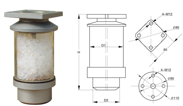 用途: 吸湿器用于清除和干燥由于变压器油温之变化而进入变压器(或互感器);储油柜的空气中的杂物和潮气,以保持变压器油的绝缘强度。 技术参数: 适应环境:-30~43℃; 通气阻力:≤0.01Mpa; 吸附材料:细孔硅胶75%,显色硅胶25%,材料颗粒φ2-6mm; 吸附能力:(在温度20℃时)