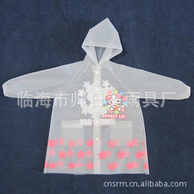 我厂专业研发生产环保面料高档PE、PEVA、EVA薄膜,雨衣,EVA时尚雨衣,印花雨衣,浙江临海雨具工厂,工厂从面料到成品一条龙生产,拥有多条国际最先进的流水生产线,可定做客户指定的厚度、颜色及规格尺寸等要求。本厂生产的PE、PEVA或者EVA薄膜,表面有磨砂、布纹、钻石纹、半透明、全透明等可供选择,产品广泛用于雨衣、雨披、雨伞、台布、浴帽、浴帘、薄膜袋、购物袋、围裙、口水巾、围兜、护理垫、失禁垫、产褥垫、急救垫、宠物垫、卫生巾,汽车脚垫等,面料可以加天然香水,薄膜可以印刷、车缝、高频热合,复合等,面料可以加天然香水,薄膜可以印刷、车缝、高频热合,复合等。薄膜具有无毒、无味、质轻色艳(密度为0.925克/立方厘米)手感滑爽等特点,是新型可回收的环保材料。