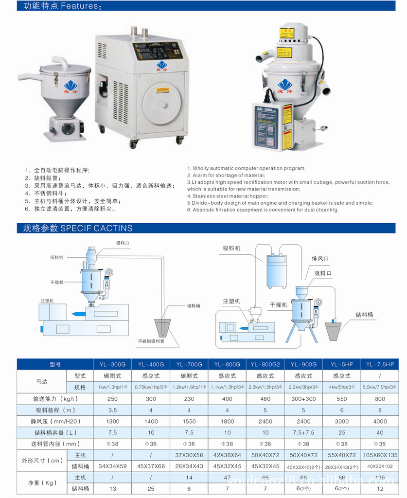 3、采用高速整流马达,体积小、吸力强、适合新料输送;