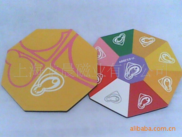 1)磁性冰箱贴:采用下面软磁+表面铜版纸彩色印刷+PP复光膜,制作而成。
