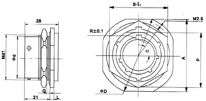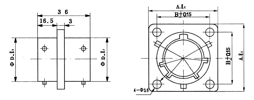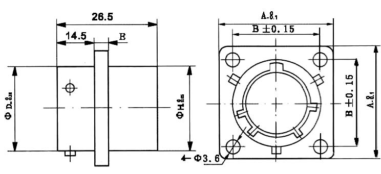 插座外形及安装尺寸(方法兰式)