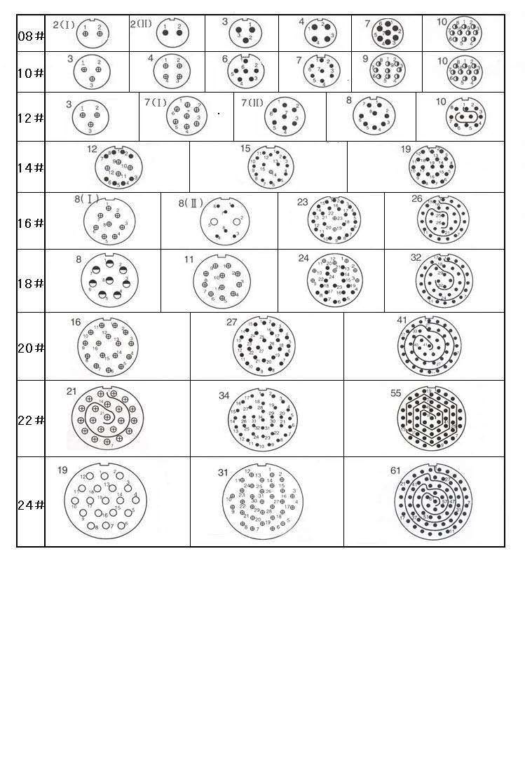Y50X系列接点排列(装针绝缘体插合面视图)