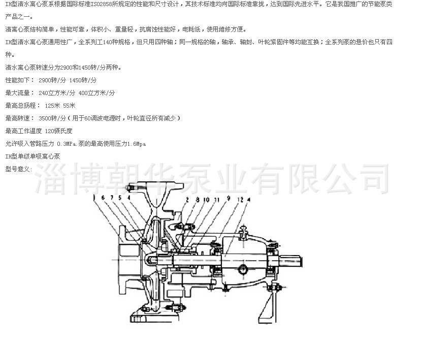 专业供应优质IH型单级单吸离心泵