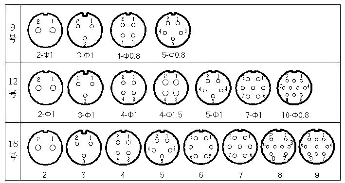 标志、代号及意义接点排列图(装针绝缘体插合面视图)XQ9插座外形及安装尺寸(螺母并紧)XQ9插头外形及尺寸XQ12插座外形及安装尺寸(螺母并紧)XQ12插座外形及安装尺寸(方法兰)XQ12插头外形及尺寸XQ16插座外形及安装尺寸(螺母并紧)XQ16插座外形及安装尺寸(方法兰)XQ16插头外形及尺寸