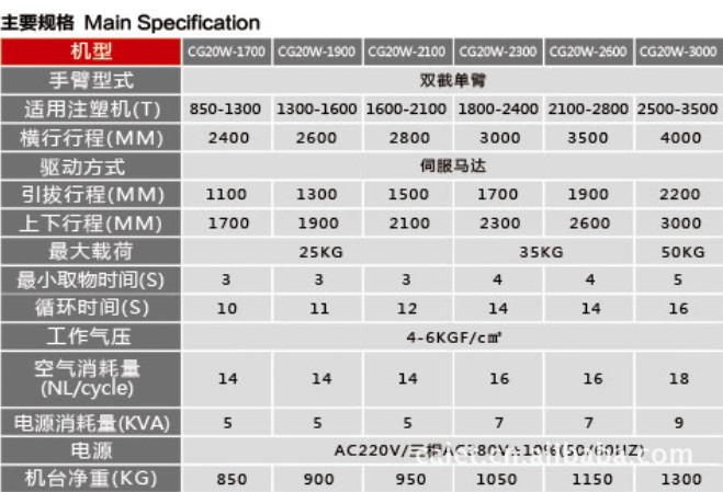 CG大型横走系列,专门针对汽车配件及大型塑件的取出,适用于850-3500T的注塑机