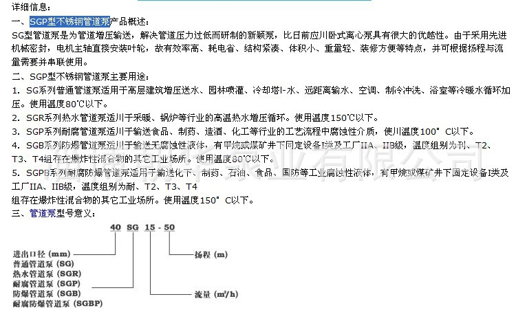 专业共优质SG系列型管道泵