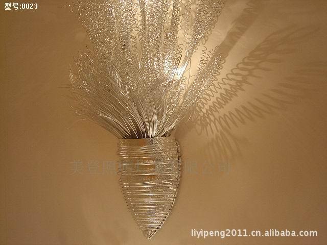 经过手工师傅的精心编织,由毫不起眼的扎堆铝丝线变成了各种各式养眼的花瓶、花朵、花篮等装饰品甚至是装饰灯具。精致的铝丝花瓶里散发出朦胧的光芒,隐隐约约的光线让人倍感温馨,雅致而又能让人赏心悦目!