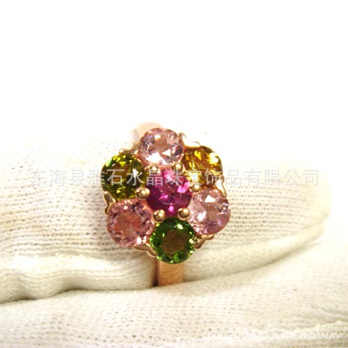 【名称】925银镀玫瑰金天然碧玺梅花戒指