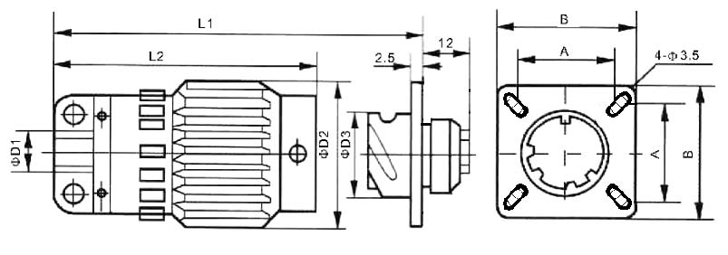 | A | D1 | M左 | B | D2 | D3 | L | L1 | L2 |