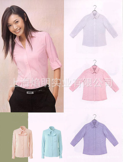衬衫的款式,除领式外,衣身有直腰身、曲腰身、内翻门襟、外翻门襟、方下摆、圆下摆以及有背褶和无背褶等。袖有长袖、短袖、单袖头、双袖头等。