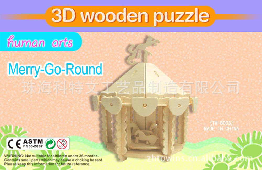 产品名称:工艺品/礼品/促销品/DIY 拼图/木质立体拼图/-人文艺术系列(旋转木马)