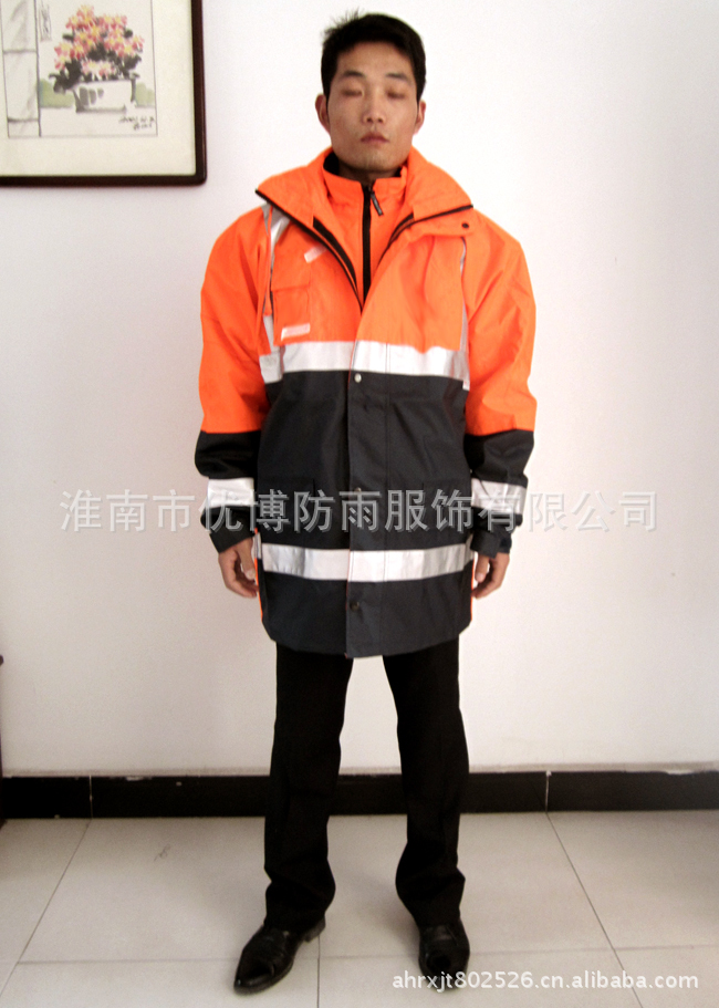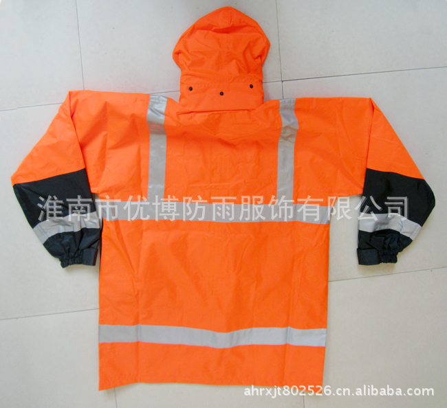 该款式采用300D尼龙面料,加涂100%防水PU涂层,优质3M反光带,里层为优质网格布设计,透气透湿,本产品防水防风,大方实用,款式休闲!四季皆可穿着。
