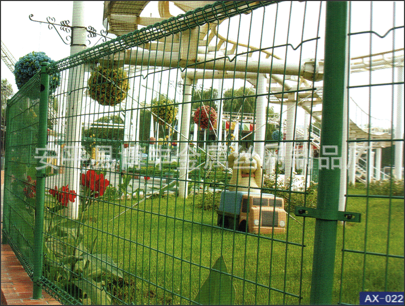 产品材质:优质镀锌管材,(由内至外防止钢铁生锈)。优质低碳钢丝..编制方式:切割,组装点焊而成表面处理:电镀锌、热镀锌、PVC包塑、浸塑、喷塑颜色分类:黑、白、蓝、绿、橙、黄工艺:预直丝、裁剪、预弯、焊接、检验、置框、破坏性实验、(PVC、热浸)、包装、入库产品优点:1、具有美观、实用、方便运输和安装简便等特点2、安装时不限地形适限制,与立柱连接位随地面起伏可上下调整3、横向加装四道折弯加强筋,在整体成本增加不多的同时,使网面强度和美感显著增加4、采用电镀、热镀、喷塑、浸塑等防腐形式,具有很好的抗老化、抗晒、耐候等特点产品用途:企事业单位透绿工程专用护栏.、场区围栏网、 开发区隔离栏使用