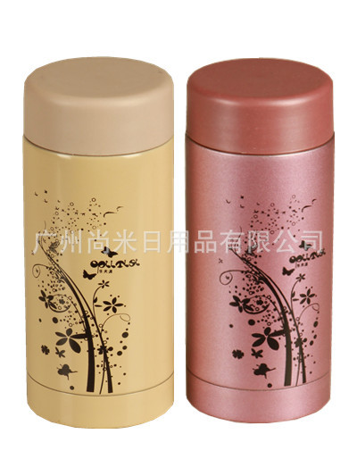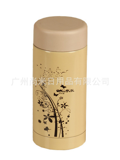 3、 贴金。即金属贴片,用金箔在杯身贴上所需的图案很文字,颜色金色,感觉高贵,到那时费用高,主要适用于不锈钢保温杯。优点:高雅高档,缺点:工期较长,工艺复杂,需起订量大。