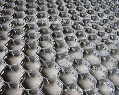 网片大小,由购方自定各种规格加工定做,已有多家主机厂配套合作生产各种金属配件、已为多家石化设备制造企业配套供应各种衬里金属结构件,所生产的产品广泛应用于用于石油化工大型装置,特别是有利于催化剂化装置主要设备的衬里结构的主要配件之一,它能够提高衬里的耐磨性能和强度,耐磨衬里都用龟甲网加固,一般部位用碳钢(A3F)龟甲网、如反应器及一、二级旋风分离器、U型管再生器烟道等处, 高温部位用合金(1Cr13)龟甲网,如再生器及一、二级旋风分离器等处。龟甲网为20*17.5毫米的扁钢带冲成的六角形格,固定在保温钉端板上。