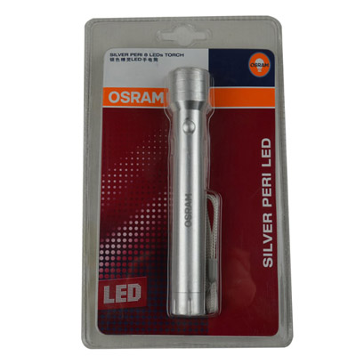 欧司朗LED银色精灵手电筒采用高亮度白色LED,具有节长使用寿命(50000小时)的特点铝合金外壳坚固、轻巧、时尚,防尘防水设计。整体设计精美、高贵雅致,是居家旅行的必备用品。