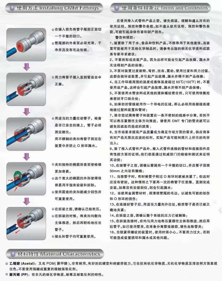 名称:3比3直通外丝 编号:AMCBT0606 规格:3分外丝3分插管 说明:接驳3分(3/8")水管 ,外螺纹为3分(3/8");带3分卡环1个 价格:6.00 | 名称:4比3直通外丝 编号:AMCBT0607 规格:4分外丝3分插管 说明:接驳3分(3/8")水管 ,外螺纹为4分(1/2");带3分卡环1个 价格:7.00 | 名称:4比3直通内丝 编号:AFAB0607 规格:4分内丝3分插管 说明:接驳3分(3/8")水管 ,内螺纹为4分(1/2");带3分卡环1个 价格:10.00 | 名称:3分三通 编号:ATU060606 规格:3分插管 说明:三头可接驳3分(3/8")水管;带3分卡环3个 价格:15.00 | 名称:2分/3分卡环 编号:ALC04/06 规格:3分 说明:配套2分/3分快速接头,1个/套 价格:1.00/套 |