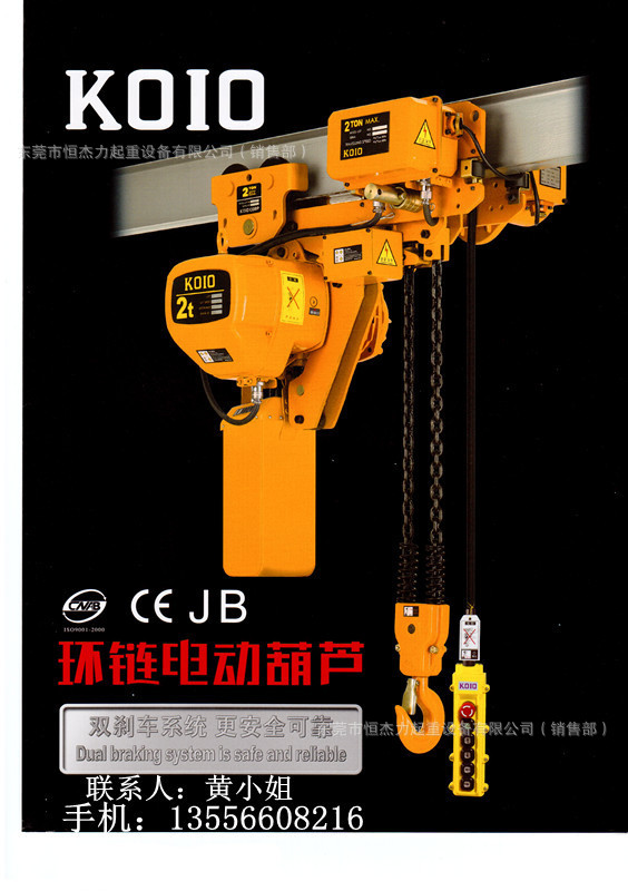 东莞恒杰力起重批发环链电动葫芦介绍及适用范围: