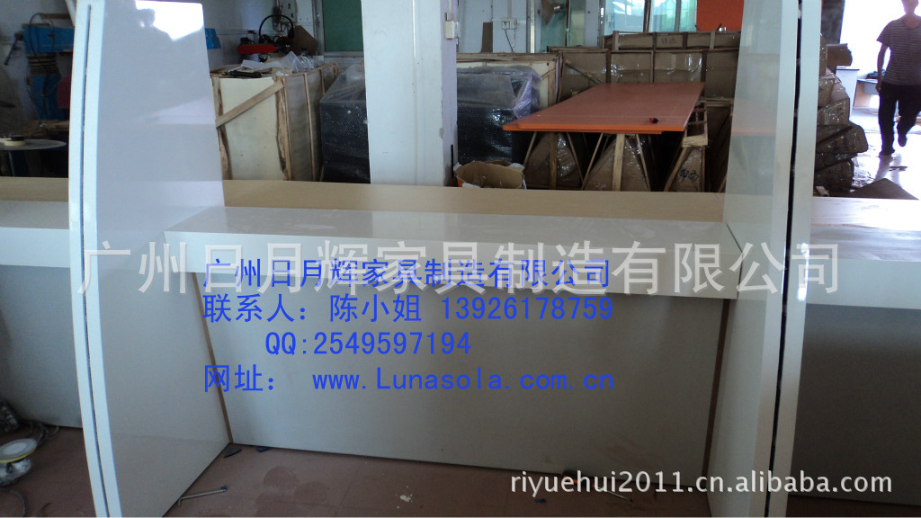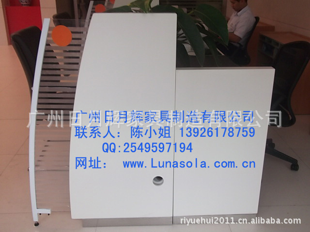 名称:非现金柜台规格:W1760*D1400*H1180材质说明:中密度纤维板,拉丝不锈钢踢脚,前挡为红榉色三聚氢胺板贴5mm清玻焗红色油漆,台面和屏风为雪花白人造石,条纹玻璃防窥板。公司网址:www.Lunasola.com.cn联系人:陈小姐 13926178759 QQ:2549597194