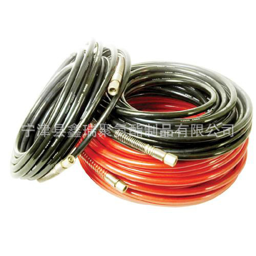 山东省宁津县鑫瑞聚氨酯制品有限公司,是专业生产各种高性能工业软管及总成的企业,主要产品包括;聚氨酯管系列,尼龙管系列及其它高性能工业软管系列,聚氨酯浇铸、注塑,吹塑制品。聚氨酯软管是传统橡胶软管的升级换代产品,具有橡胶管无法比拟的优点的特性;1、耐油性能比橡胶管高10-20倍,能有效地防止因油蚀造成的渗漏。2、承压高,重量轻,弯曲半径小,灵活轻便,方便技术设计和生产安装。3、耐高低温性能好,适应性强,可在-20c-+120c使用。4、内壁光滑,液体阻力小,液压损失少。5、外观漂亮,抗污染,耐磨性能是天然橡胶管的20倍以上。6、阻燃性好,耐冲击,耐老化,耐疲劳,无毒无味。7,具有高弹性,高伸长率,高强力。8、使用长度可任意选择,中间不用接头。我公司研制生产的聚氨酯软管已广泛应用于石油、化工、工程机械制造、煤矿、造船、航空、汽车、医疗器械等行业,是各种机械设备理想的液压和气动软管,是各种液体和粉体输送、高压喷涂、高压清洗、喷砂除锈等领域的最理想软管。我公司设备先进,工艺精湛,检测设备齐全,具备开发新产品的能力,曾获省市科技进步奖,被国家科委定为国际级火炬计划项目,被省技术监督局评为产品质量信得过单位,并通过iso9001质量管理体系认证。公司宗旨;科学可靠的设计,精益求精的制造,准时快捷的服务,力争第一的追求,用一流的工作,向用户提供一流的产品和服务。
