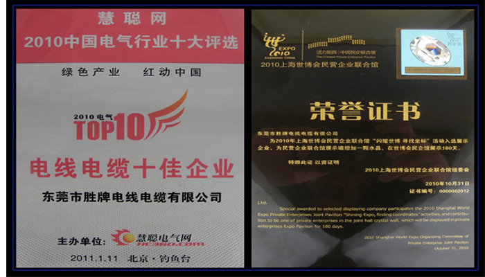 3.荣获2010年全国十大电线电缆供应商;