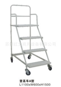 备注:整体表面喷塑颜色可根据客户要求加以喷塑,折叠式登高车尺寸一般为固定式的,非折叠登高车尺寸一般可以根据客户要求来加以定做的哦,优质选材,踏板平台采用花纹钢板,四层踏板(含平台),底部采用优质万向轮(二定二万),上部装有安全护栏,坚固安全,表面喷塑,方便登高取放物品,是一款流动的货梯,可按客户要求定制。