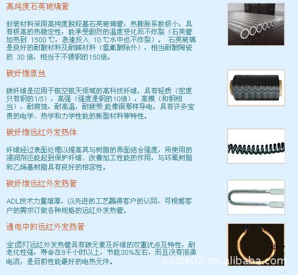 2、节能环保,超强寿命。C纤维纯黑体材料比同功率的钨钼发热材料提升30%以上热效率,发热管采用高纯度脱羟基石英玻璃管耐冲击,清洁,平均寿命8000小时,光波传热,空气不干燥,不产生对流和细微粉尘飞扬,对需要高密度,高能量,高强辐射加热的高品质产品特别适用,是一种理想的洁净的加热原件;