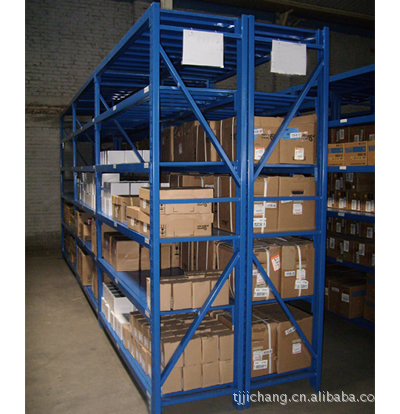 中型货架:冷钢型材冲压蝴蝶孔,横、斜杠焊接。横梁:P型钢,两头与蝴蝶孔挂件焊接。层板:冷轧钢板。表面全部做静电塑粉高温处理,中型量仓储货架由立柱片、横梁、层板组成,结构简单,拆装方便,安全可靠,造价低廉。采用优质冷轧异形钢、冷轧钢板经辊压焊接成型。立柱为钢质特种型材,蝴蝶孔(燕尾孔)与横梁上的套件合理插接,使拆装更加方便,蝴蝶孔以65mm为单位,层高可上下任意调接。层板是冷轧钢板,层板下面可点焊轧制式超强型加强筋,使其单层承重可200-350KG(材料大小不同,承重不同)。表面均经酸洗、磷化静电塑粉喷涂,经过高温处理使其与钢板有交结合,防腐防锈、坚固耐用、美观轻便及防静电功能,广泛适用于对承重要求较小的仓储、库房需求。可与塑料周转箱配合存放多品种小件产品。规格尺寸可按客户空间需求量身定做。