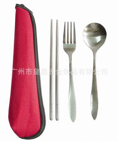 更多的选择的机会。产品可以丝印、激光、冲压上贵公司的LOGO,宣传广告语!我公司生产的不锈钢餐具套装包括:便携式布袋餐具、便携式笔筒式餐具套装、盒装餐具套装、环保组合套装、儿童组合