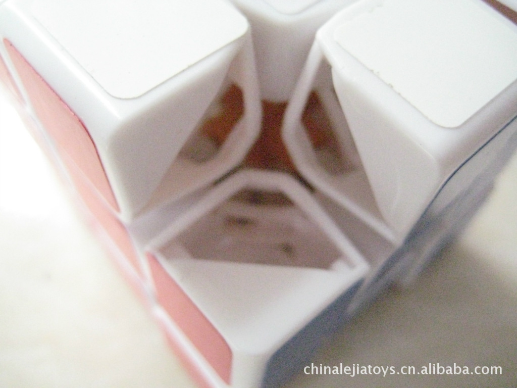 棱块从外观上很明显,外面四个角的部位好像被刀切了一片,组装出效果来看,我觉得这下去的一片给我感觉非常舒服。彻底的解决了角块和棱块碰撞的问题,而且我觉得很巧妙和好看。