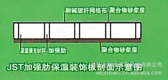 超薄石材 公司用专利设备打造的超薄天然石材厚度可达3—8毫米,最大规格可达1.5米*3米,具有超薄巨型、轻质牢固、施工快捷、节能环保、减轻楼体负荷、节约石材用量、降低工程造价等诸多优势,独创的施工工艺比传统的石材干挂工艺节省钢材100%、节省石材资源60%、节省工时50%、减轻荷载60%,做到了省工、省料、省资源。 不裂、不掉、不燃烧、与建筑基地同寿命的JST加强筋保温装饰复合板 ·结构科学:壳式结构、多壳组合、六面包裹、单体安装,用组合壳体作为支撑结构,用保温材料作为填充物,用无机材料包裹有机材料,完全控制了保温材料的热工变型。 ·性能卓越:压剪强度40吨/m2;抗拉强度17吨/m2;100度高温时拉拔强度6吨/m2.可与建筑基体同寿命,不裂、不掉、不燃烧。 ·省时省工:工厂化生产,施工周期缩短一倍以上;产品直接粘贴到建筑外墙,一步到位一次成功;安装快捷,施工方便,改变了传统外墙保温的施工方法,极大地提高了施工效率。 ·使用广泛:保温装饰一体化,给石材、瓷砖解决了一个可靠的保温粘贴母体,同时适用于氟碳漆、真石漆、彩石粉等多种墙体饰面材料。 ·效果显著:保温效果好,重量轻,大幅度的减轻楼体负荷,耐候性能强,经久耐用,与传统保温相比,社会和经济效益显著。 ·绿色环保:产品全部工厂华生产,避免施工现场污染,从根本上解决了困忧外墙保温存在的开裂、脱落、易燃烧等三大痼疾。