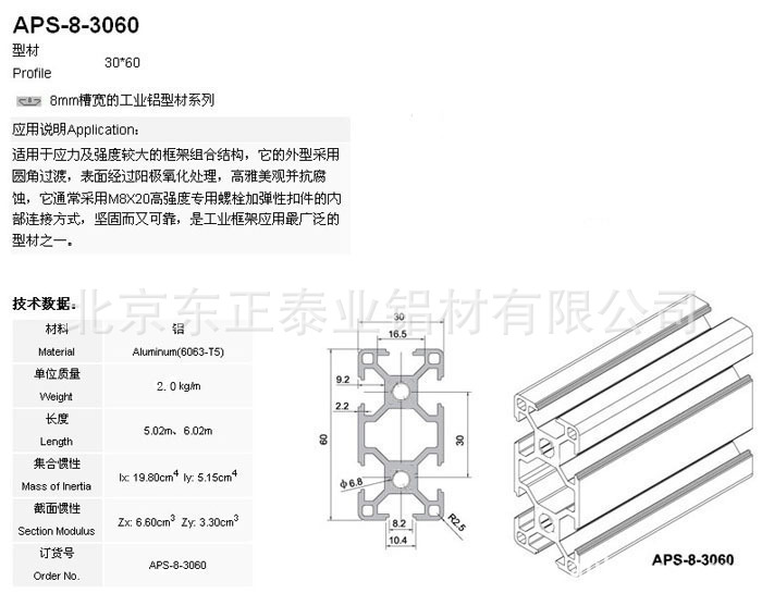 北京大量供应aps-3060工业铝型材 流水线 设备框架 工作台专用