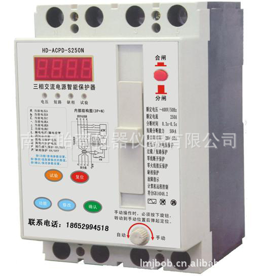 针对上述问题,我公司开发了HD-ACPD系列交流电源智能保护器(以下简称“HD-ACPD电源保护器”或“电源保护器”),符合《GB 14048.2-2001 低压开关设备和控制设备低压断路器》标准。彻底解决供电异常时,迅速切断供电线路,保证用电设备的用电安全,并在线路恢复正常后自动恢复供电,保障了用电设备的安全。