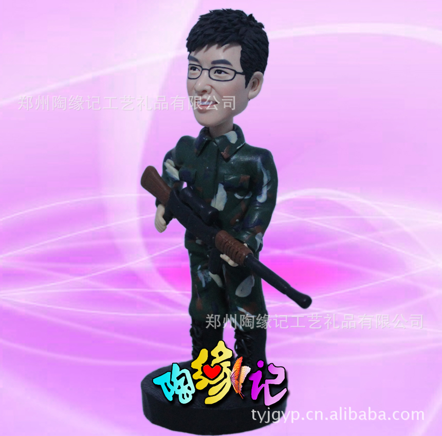 软陶人偶是一种流行的创意礼品,是用进口软陶泥纯手工打造的真人人偶。是送朋友,送亲人,亲领导的选择。真人卡通塑像的材料是软陶,也叫彩陶,外观看似橡皮泥,但是经过高温烧制之后即可硬化定型。软陶作品属于易碎品,如果不小心摔落可能导致摔坏,但是修理方法也很简单,用普通的502胶水粘接即可。在没有人为损坏的情况下,作品可以永久保存,并且不会褪色。