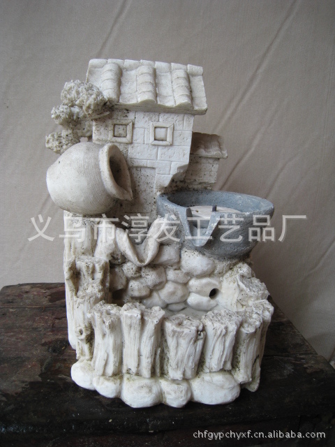 【用法】:产品底部加上适量的清水,在桌面放平.装好配好的电机,接通电源,水会推动水晶球滚动,灯光照射在水晶球上更好看,水会带动石磨转动,水从最上面流下来,会带动水车轮转动,看着别有一番风味,使您心情愉快,仿佛回到了大自然中.....