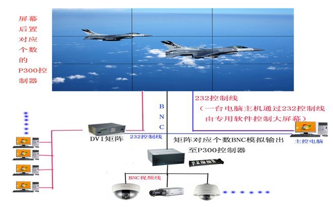 此方案中没有配置DVI、VGA矩阵,仅能实现1路电脑信号及多路BNC信号大屏幕显示,建议这1路电脑信号使用DVI/HDMI数字信号传输。(VGA模拟信号通过VGA线缆传输,经常由于线缆过长,有部分线损,造成图像拖尾或者干扰,所以建议使用DVI/HDMI信号,前提为电脑具备DVI/HDMI输出)