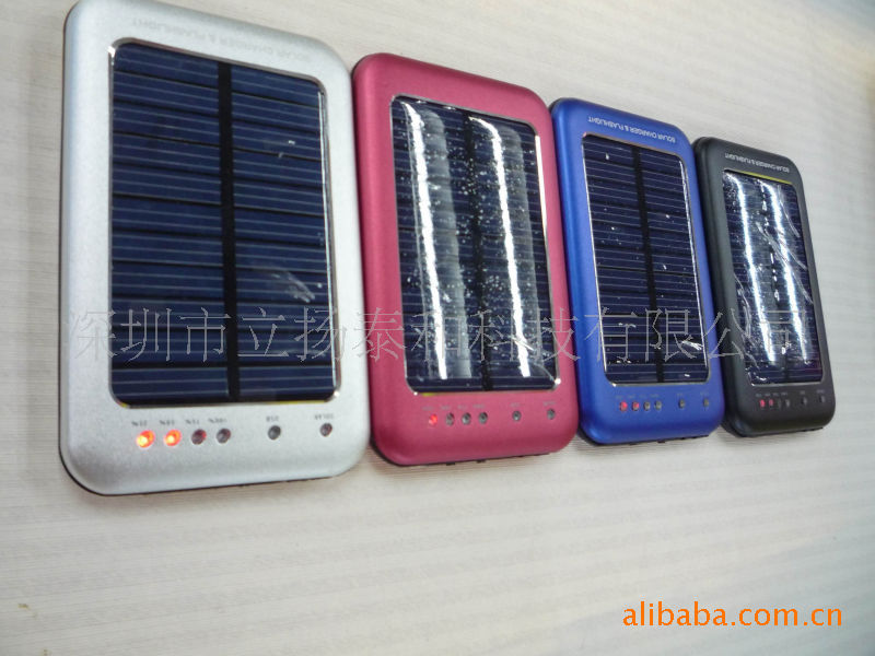 太阳能充电器是通过光能转换成电能的光电转换设备,其原理是:通过光电转换将光能转换成电能并储存在内置的锂电池里,然后再通过控制电路将内置锂电池的电量通过输出口给手机、数码相机、MP3、MP4、PSP等数码产品充电,该太阳能充电器在长期无阳光的情况下,也可以通过市电或电脑USB给内置锂电池充电,适用于出差、旅游、长途乘车船、野外作业等环境的备用电源。