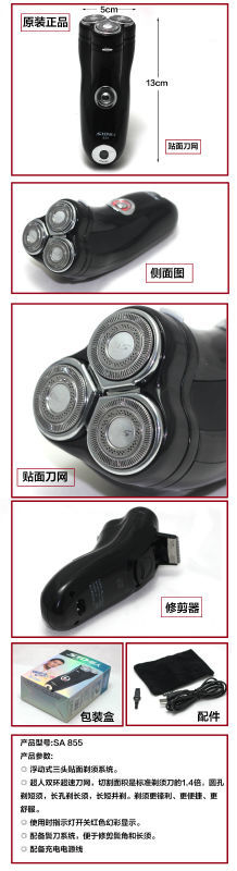 ◎ 超人双环超速刀网,切割面积是标准剃须刀的1.4倍,圆孔剃短须,长孔剃长须,长短并剃。