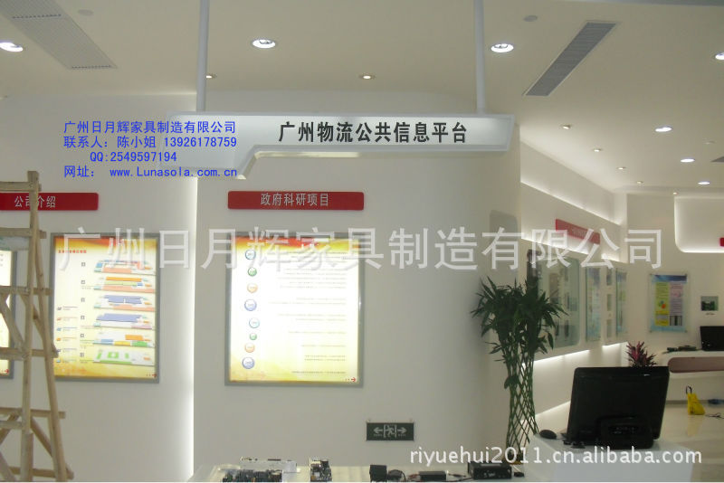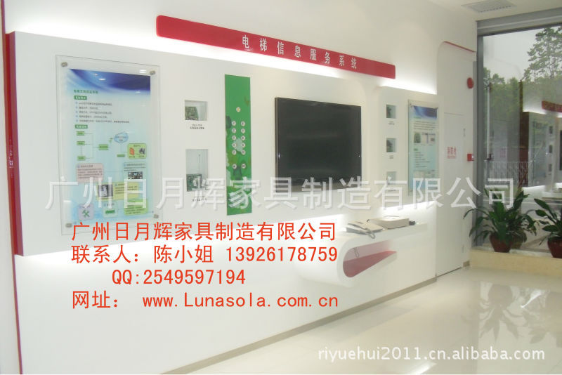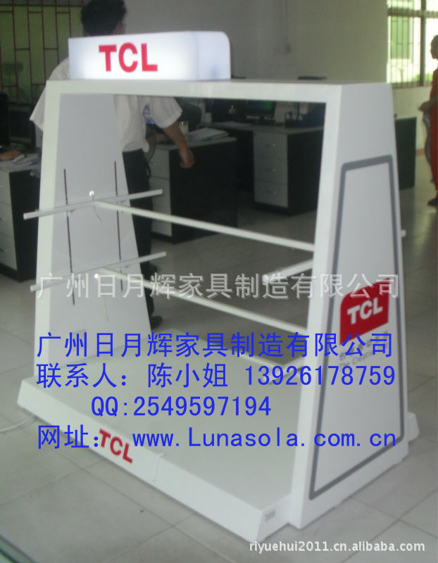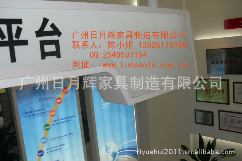 材质说明:高密度中纤板基材,白色环保亮光漆喷涂工艺,防静电处理电镀钢管,亚克力TCL灯箱,内置灯源。